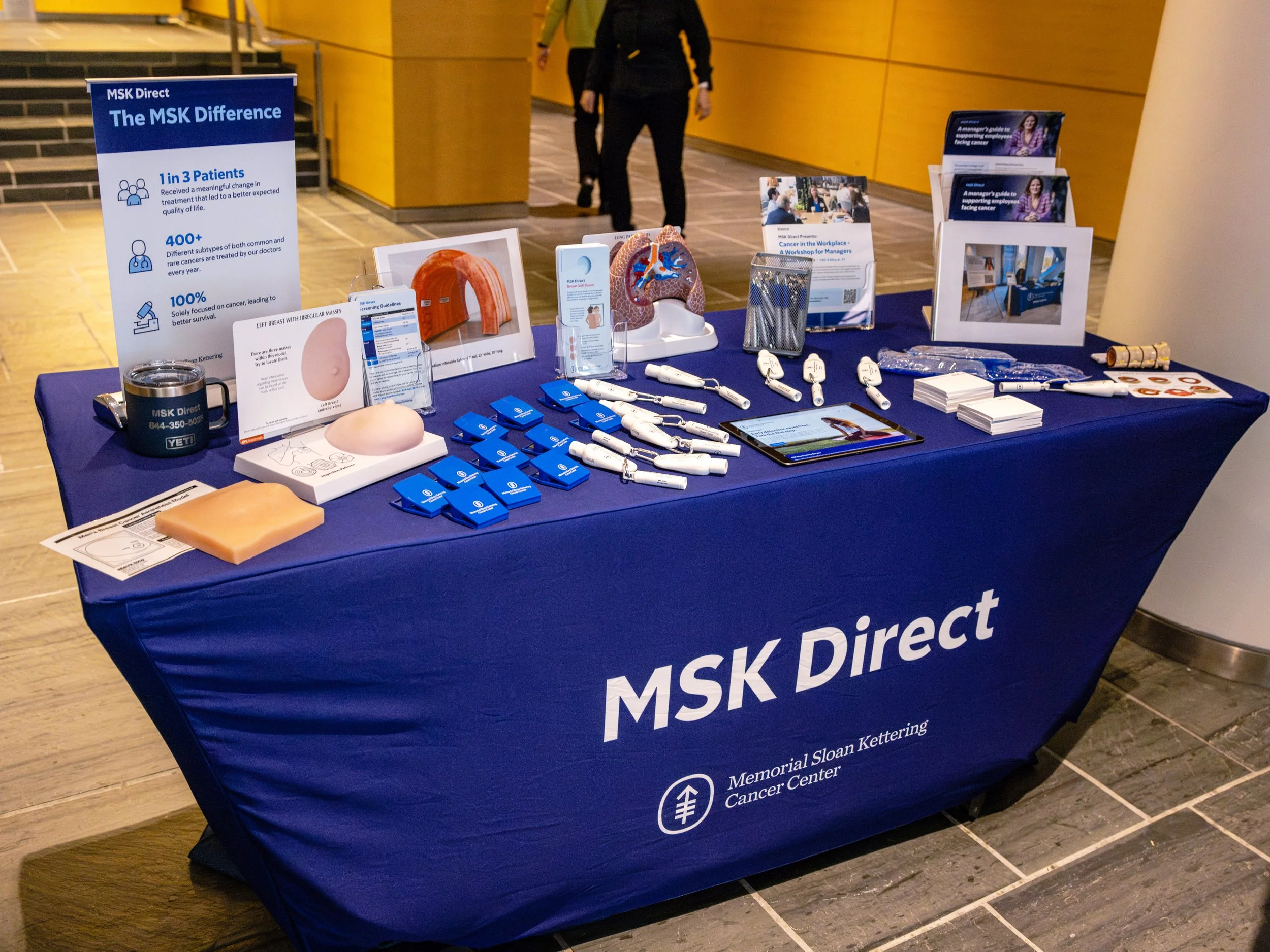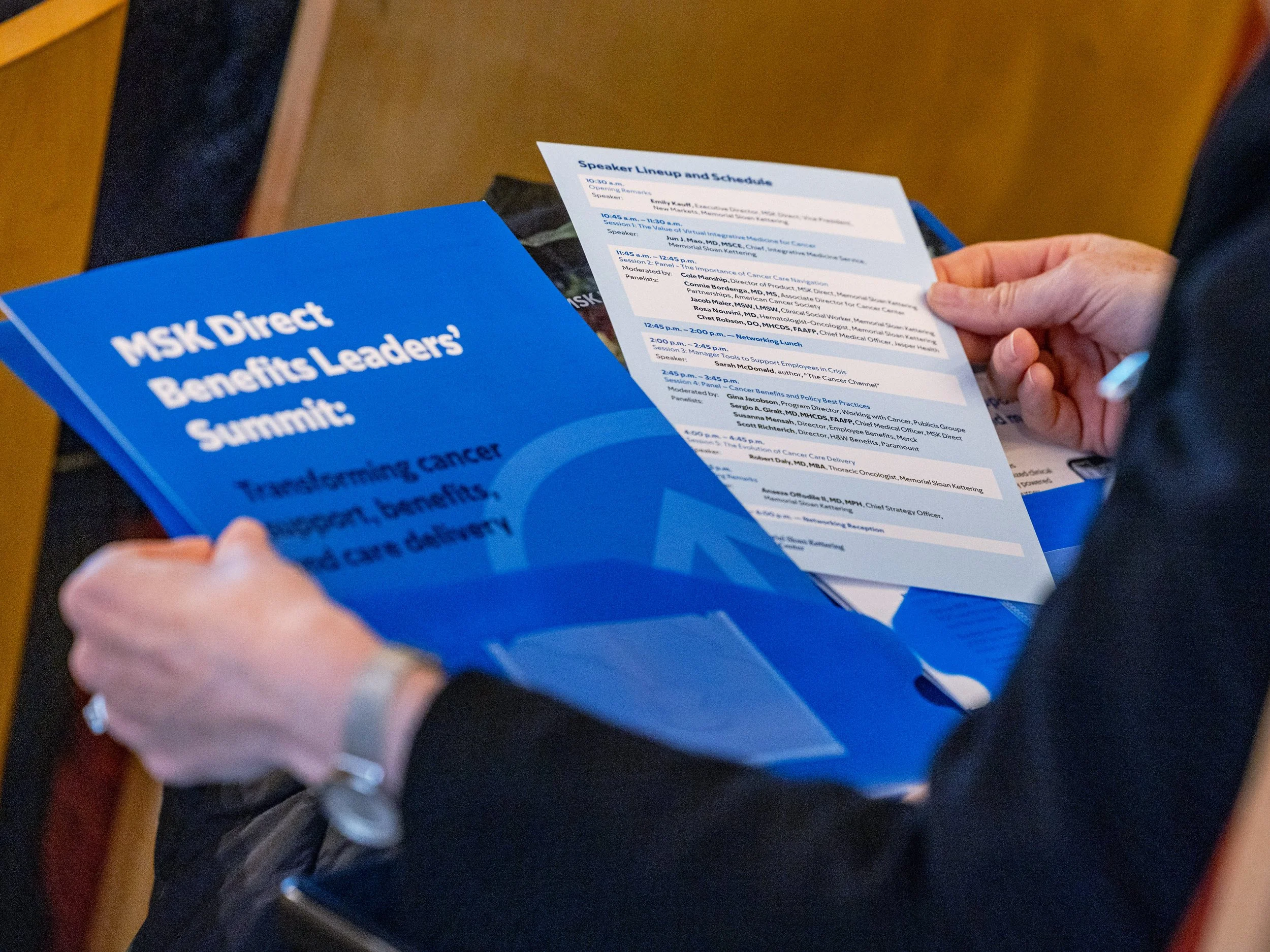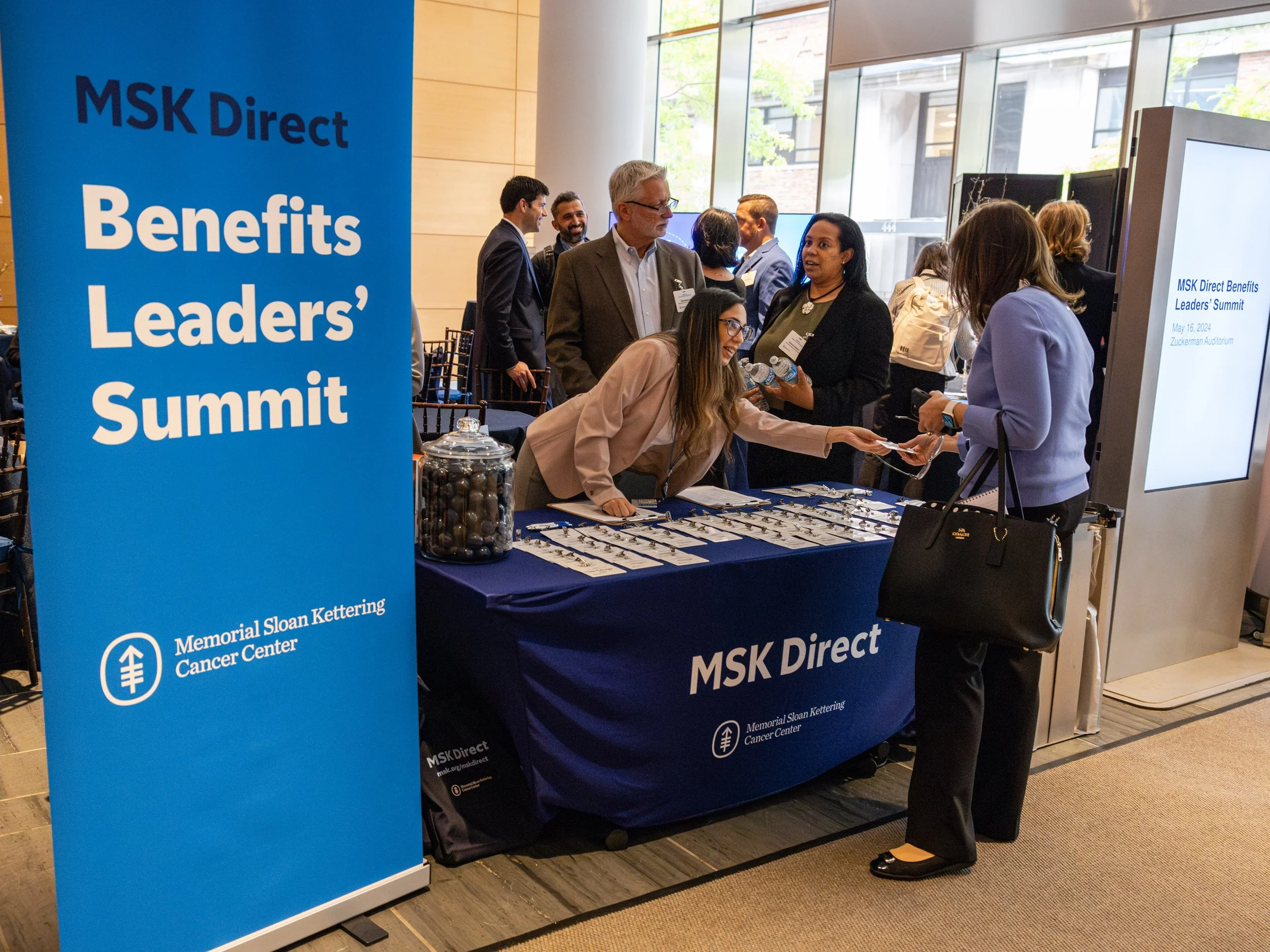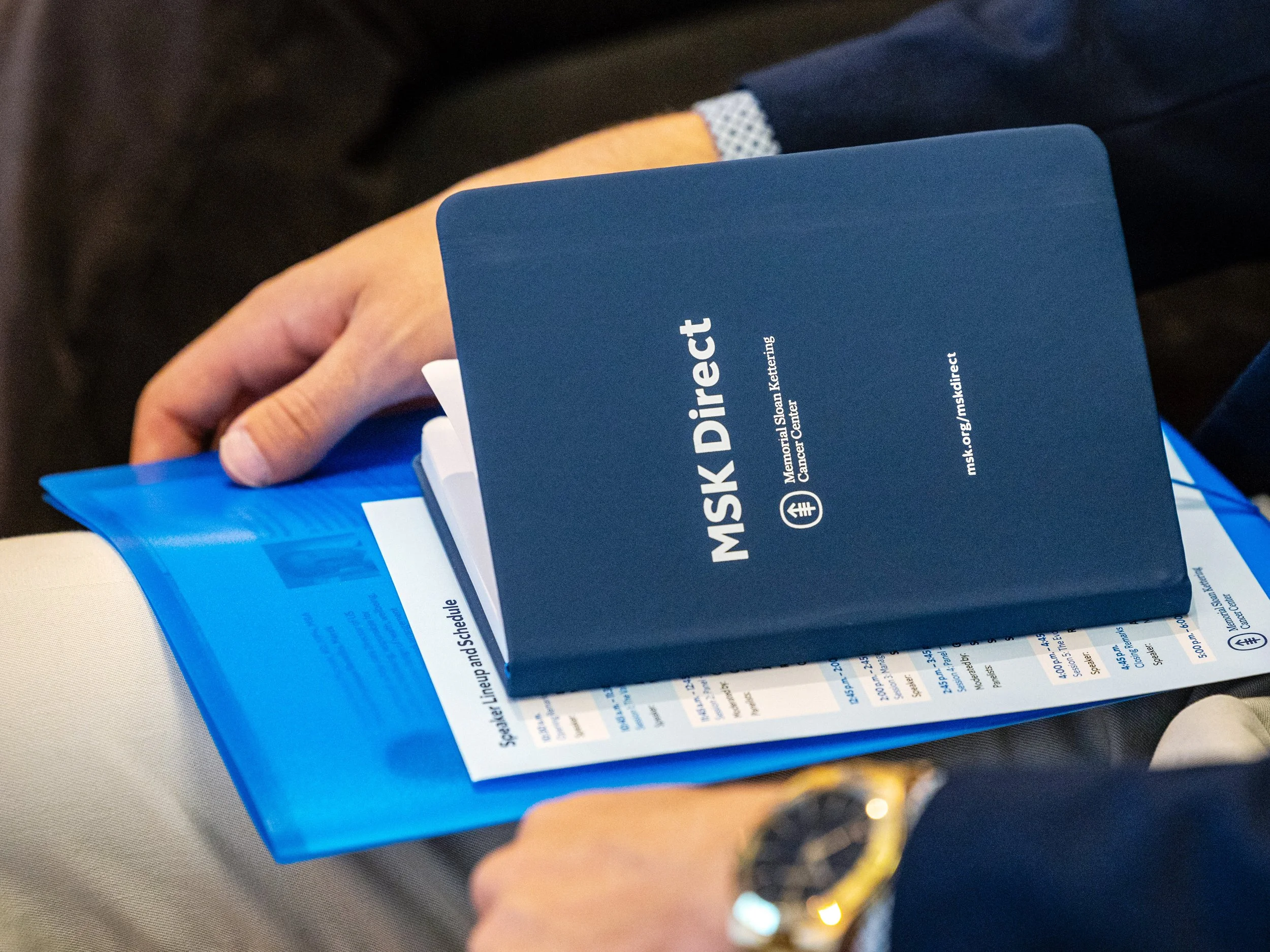 For the annual MSK Direct Summit, an event aimed at benefits leaders from partner companies, I led the design of all event collateral to create a cohesive, on-brand experience. My work included signage, flyers, brochures, name tags, tote bags, giveaway swag, and other printed materials.