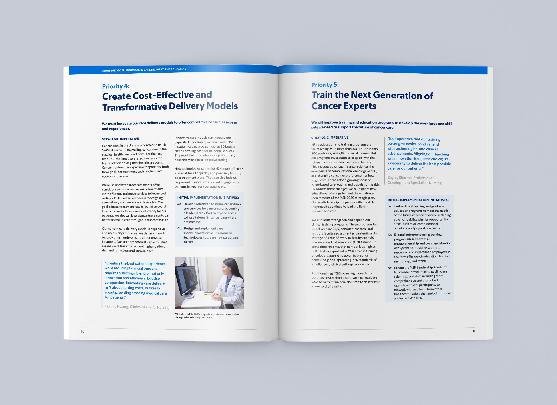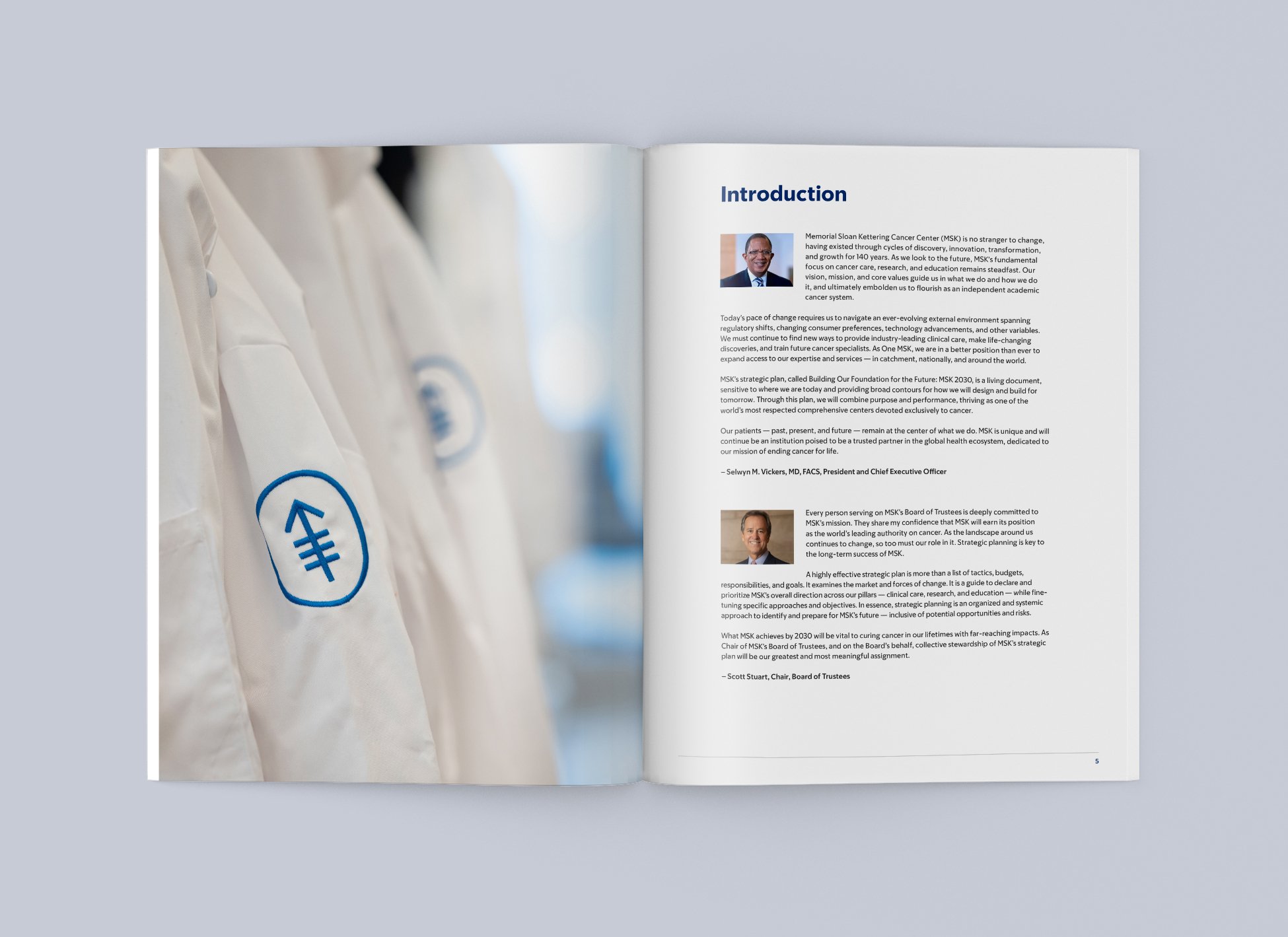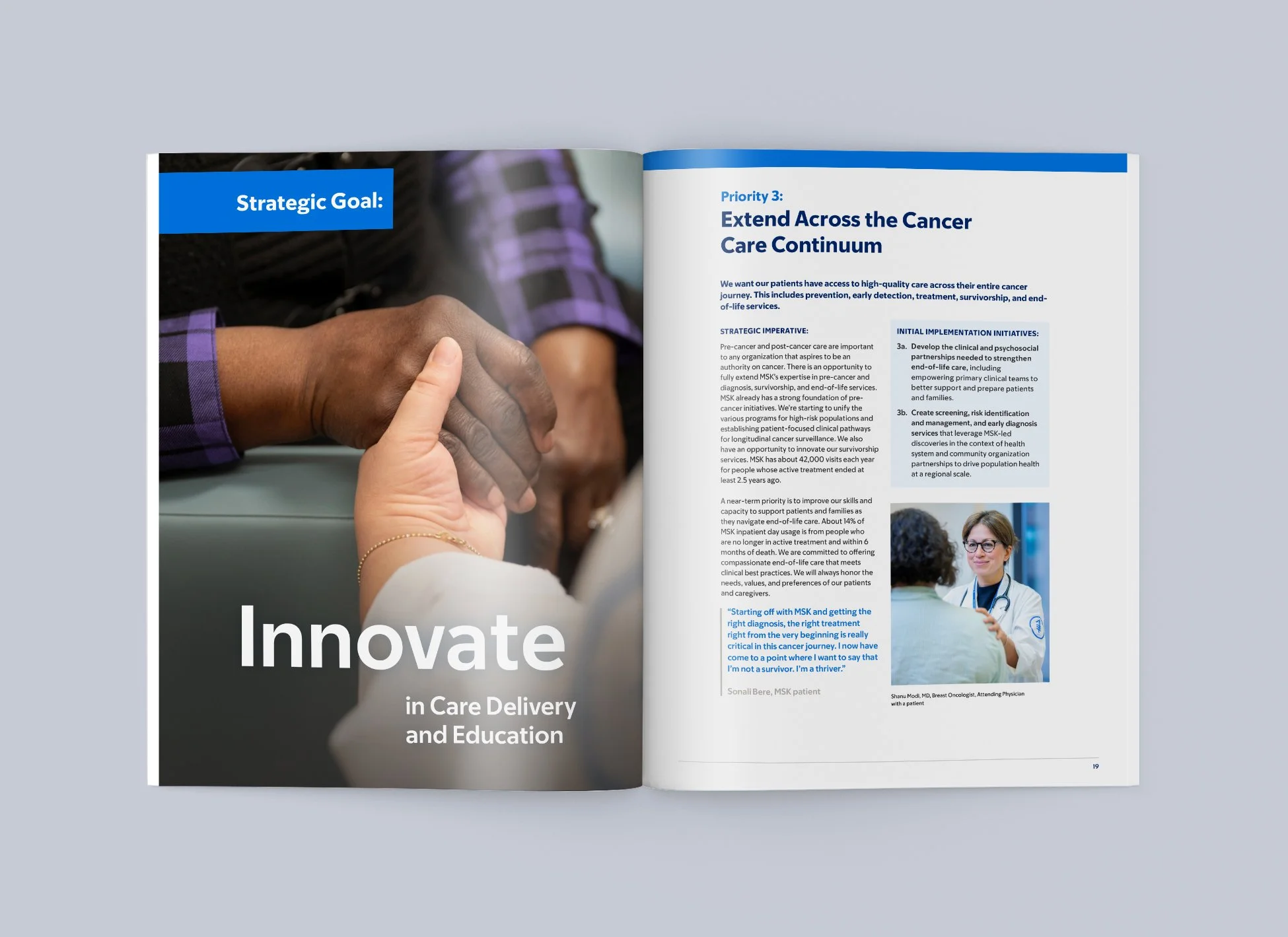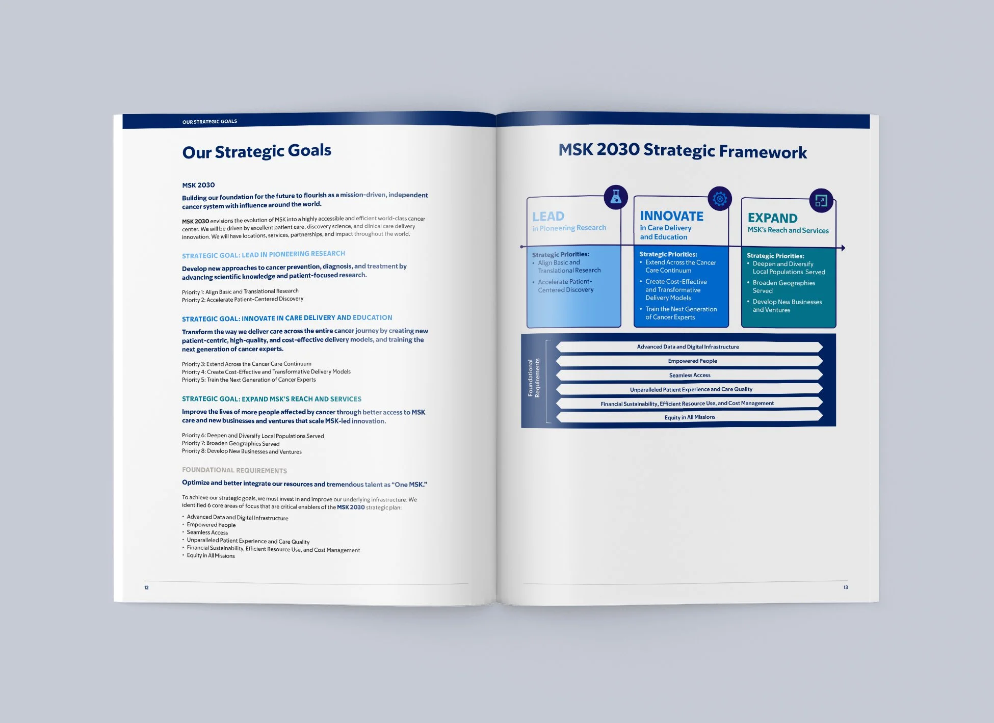 I designed the layout for Memorial Sloan Kettering Cancer Center’s Strategic Report, a publication highlighting the institution’s priorities across clinical care, research, and education. The design approach focused on creating a clean, digestible layout that made complex information accessible, while maintaining a polished, on-brand look consistent with MSK’s visual identity. The final piece reflects the organization's forward-thinking vision and commitment to shaping a meaningful future.