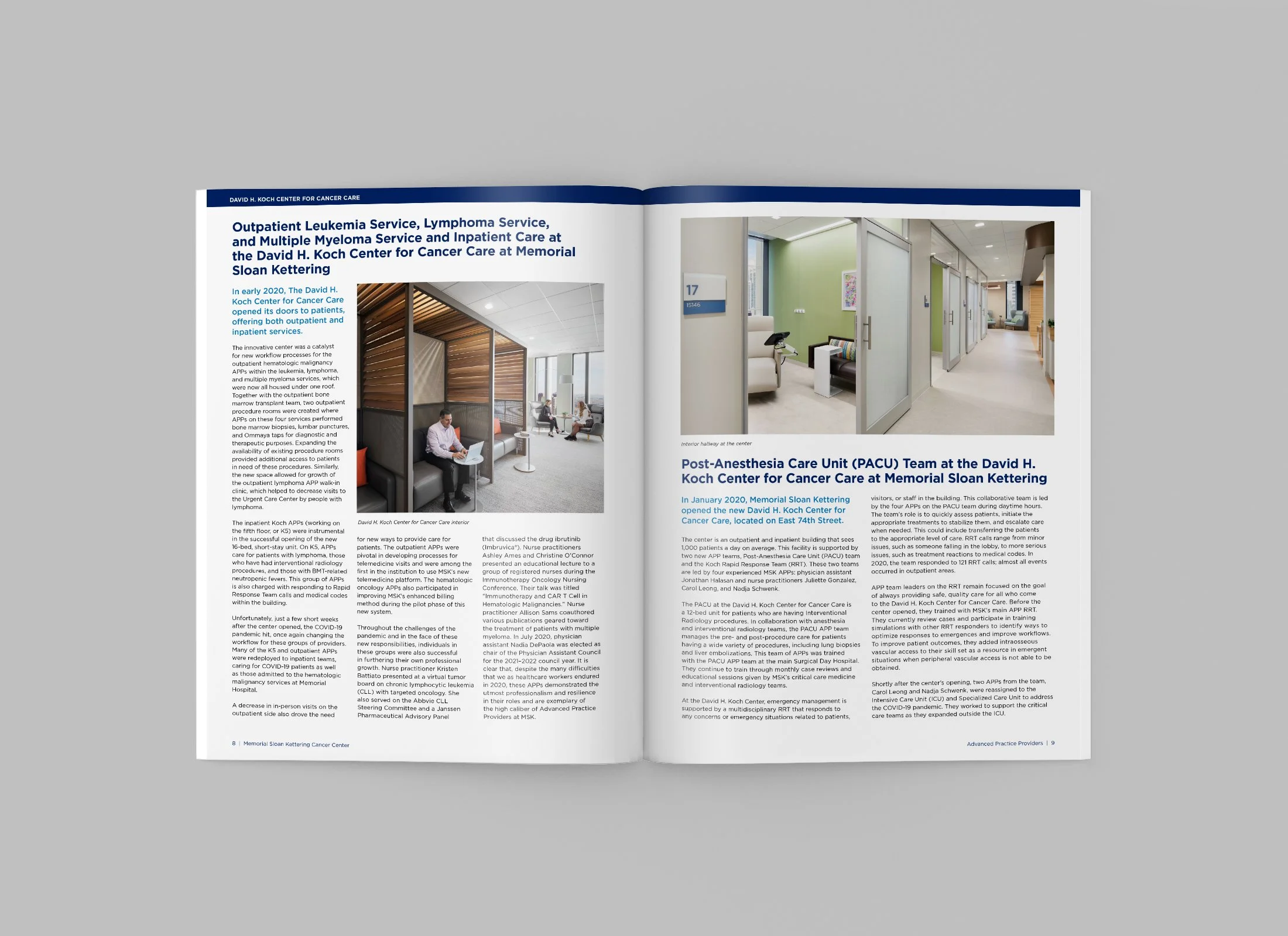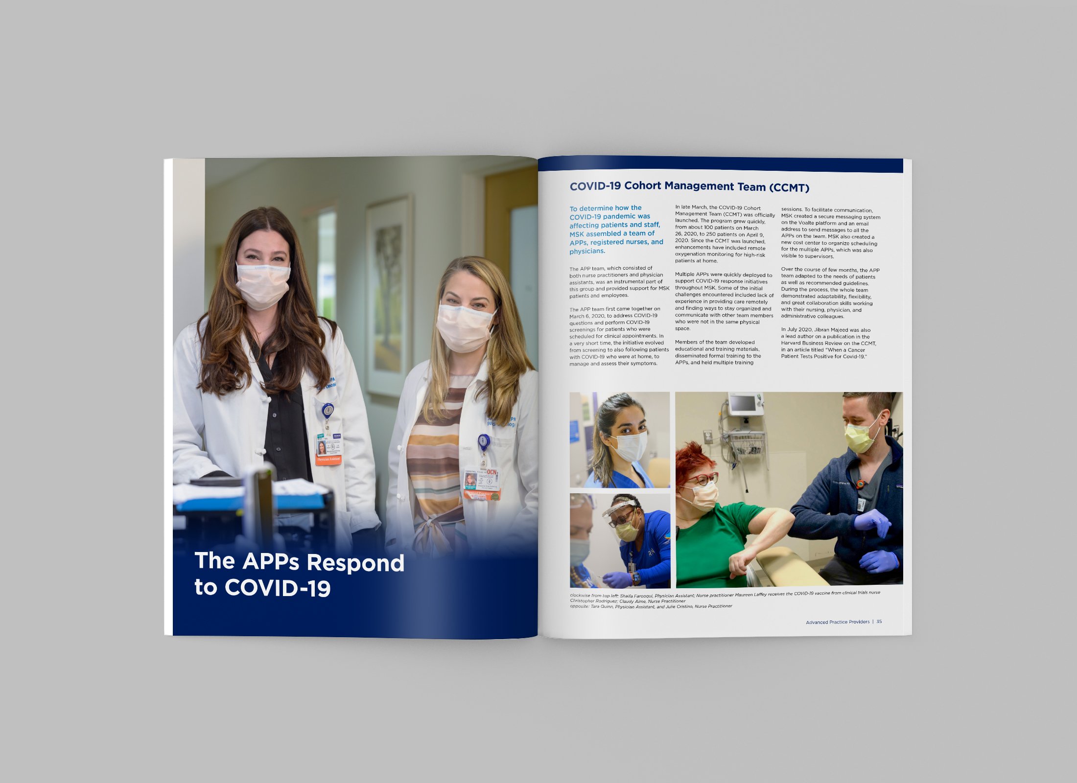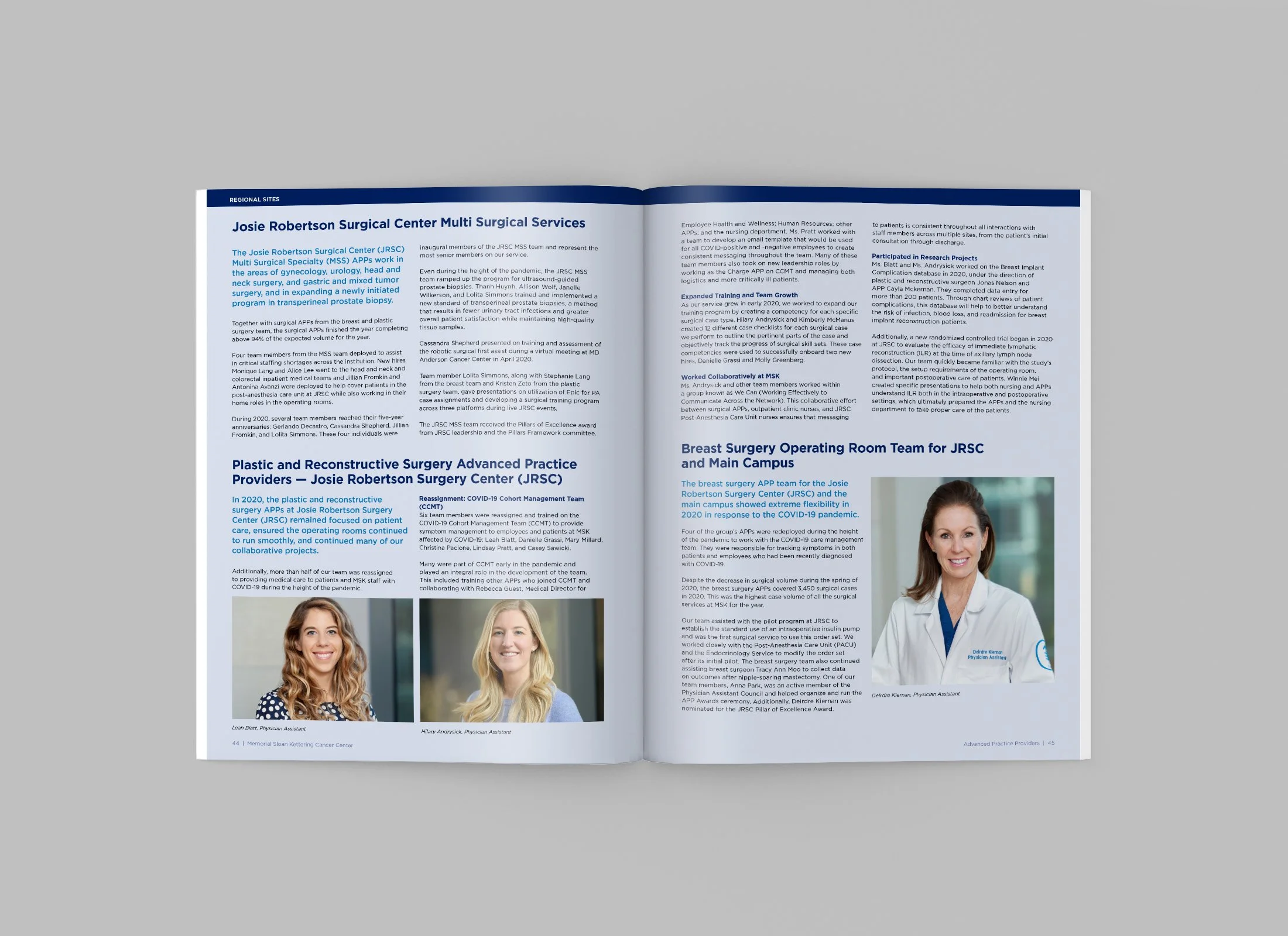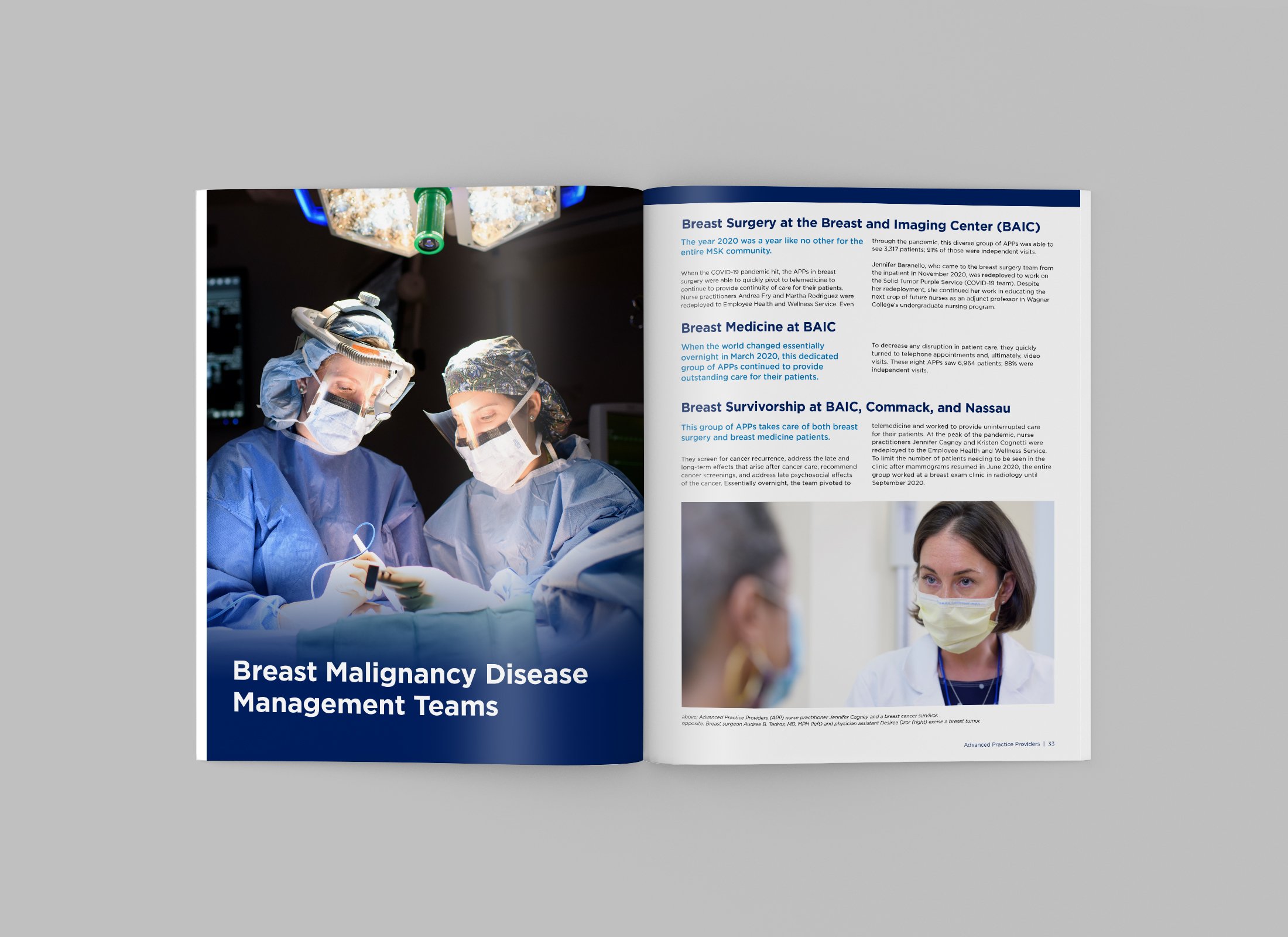 The MSK Advanced Practice Providers Annual Report highlights the dedication and expertise of APPs, featuring each clinical team, their response to COVID-19, the opening of the Josie Robertson Surgical Center, and staff abstracts. Each section celebrates the innovation, commitment, and resilience of MSK’s APP community. I designed the full-color cover and interior layouts and managed production, ensuring a polished, cohesive presentation from manuscript to print.
